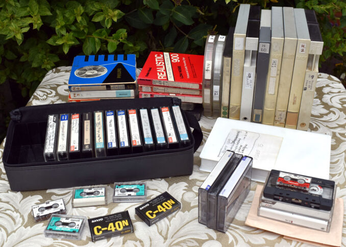 I own the equipment needed to record every one of the tapes onto the computer, with the exception of one four track reel-to-reel tape, and two minicassettes, so these were sent to a professional digitisation company.
