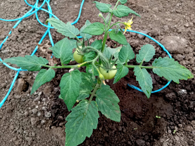 I probably mentioned, at an earlier juncture, that I’d sown some different tomato seeds this time around, hoping to add something a little different to the pot. What I hadn’t really bargained on was a dwarf tomato of any kind! I like my tomato plants to reach at least five feet in height and I’m not a fan of bushy “pot” tomato plants that need to allow the side-shoots free rein, if they’re going to be productive. I think I’ve got one here that slipped through the net! It isn’t any more than eight inches high, but it’s producing fruit from two different stems (triggerin’) and I’m not sure I can get on with it. I’ll taste the ripe fruit (one never knows), but I’m guessing this could be a first and last moment.