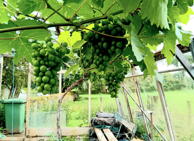 Nowt needs saying, really, the two things that takes the least looking after (once the pruning’s out of the way) are the two things that seem to have come out best from the Spring hot spell. The grape juice should be excellent this year. Nothing definite’s been decided, but if we can maintain the productivity across both vines, the idea of making a gallon or so of wine in 2026 is kind of on the cards. Watch this space.