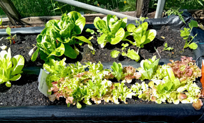 The young “little gems” make good eating, softly crisp and pleasantly sweet (in that salad vegetable way) and go well with a crisper leaf and/or something a little more bitter. The mixed “cut and come again” leaves haven’t fared so well, they came on in a rush during the hot spell and consequently needed plenty of water, but they’ve ended up stunted and leathery (a bit like me, really). To be honest, I don’t know why I’ve even left them in, laziness, I suppose. I should chuck them on the compost heap and replant the little space with another batch, they do bring a little “frisson” of something to a plate salad, honest!