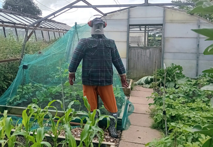 Got a bit of a shock the other morning when I turned up at the greenhouse to find Burt had gone AWOL and his twin brother Algernon (Algae to his pals) had been asked to stand in (geddit?) for a week or so, while Burt went off to “find himself”. This perplexed me a bit, mainly because I hadn’t known either that Burt was lost, or that he had a twin. Any road up and when all’s said and done, a scarecrow’s a scarecrow, so I didn’t make too big a fuss. Not that it would have mattered too much, Algae’s a dour fellow, one of those “strong, silent” types, with a permanently turned down mouth, who suffers from a rare condition which makes him very sensitive to any form of spoken instruction (hence the ear defenders). Sadly for him, Burt (I’m guessing people in his line of business have a feel for the weather) had chosen his time away well. By the time Burt got back on the job Algae resembled a drowned rat, who abruptly abandoned his post, leaving only a hastily scribbled note for Burt; “Thanks our kid, but next time, get somebody else, I’m used to broader horizons”. It turns out Algae’s a cornfield type of fellow.