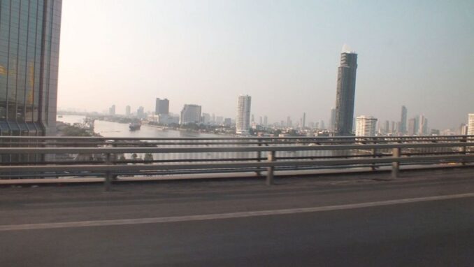 After a few miles on an elevated highway with light traffic, we descended and entered Bangkok itself.