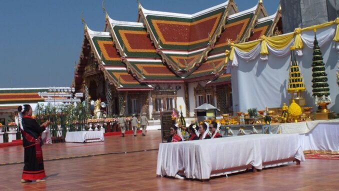 It just so happened that there was a music and dance festival being held at the temple later that evening and some ladies, wearing the costume of the Phu Thai people of the Sakon Nakhon region, were wandering around during preparations.