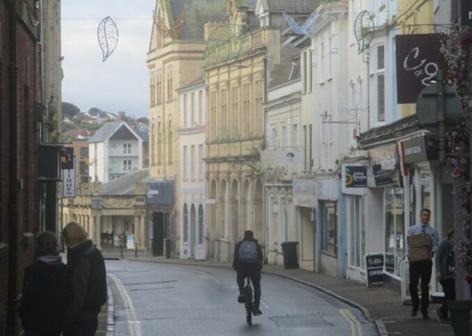 September 2024, Holsworthy: Before setting off for Barnstaple, this day’s destination, I had a good look around Holsworthy by daylight. It was a hilltop town; roads leading off the marketplace and its knot of Victorian streets sloped pleasingly down into stream valleys on every side. Small and nondescript it may have been, but Holsworthy was unusual for one thing, the size of its hinterland. For a great swathe of empty country, this was “the town.” That gave it a slightly more bustling centre than you might have expected, with at least half-a-dozen cafes, and a faintly detectable aura of local importance. With a population of just a few thousand, it even had its own drama group, the Holsworthy Amateur Theatrical Society.