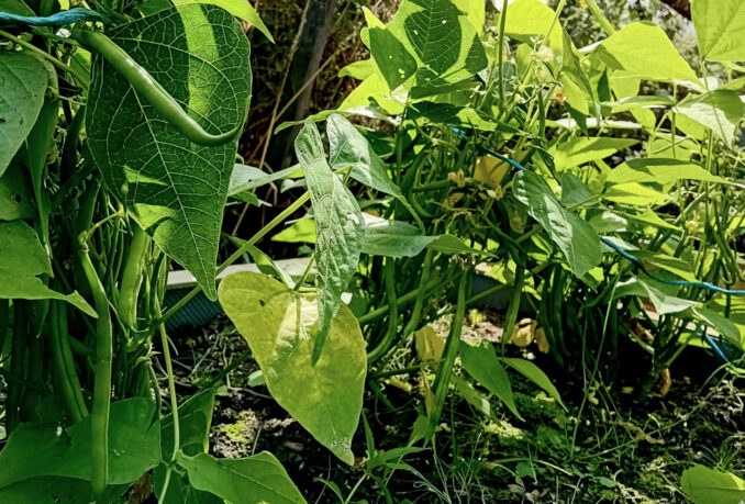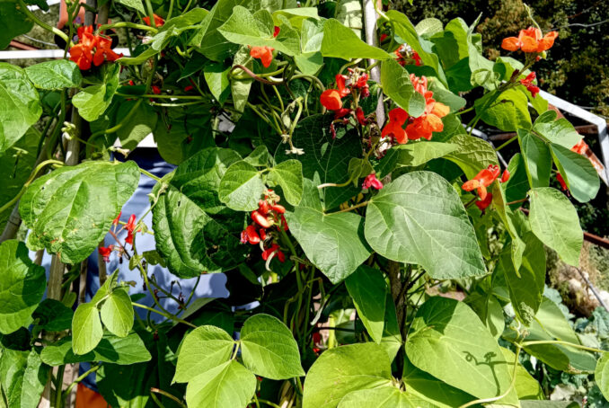 It goes without saying that the rather un-strategically placed netting played havoc with both the runners and the other climbing beans, but these are hardy plants and I don’t think they’ll take any harm. I’m quite partial to french beans and don’t mind the young runners, but I’m not fond of them when they get a bit stringy. Those I don’t catch in time (there are always some) will probably end up, not in the freezer, but in the “Free, Help Yourself” box.
