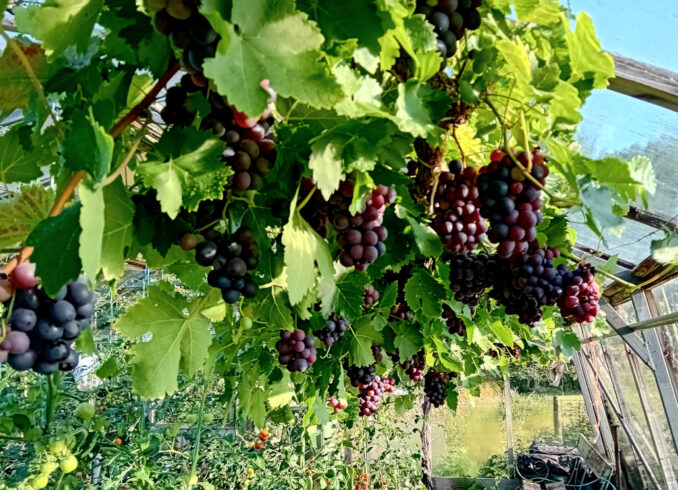It was impossible to resist taking a decent handful of these lovely black grapes for a little snack. Both vines heavy are heavy with bunches, although the younger one (on the western side of the house) is ripening more slowly and they’re as sweet, tangy and juicy as they ever were, if not more so. Thank you, Klimate Katastrophe, for this little burst of heat and sunshine at the tail end of the season. I imagine it’s the kind of weather winemakers dream of, while bought and paid for “scientists” and greedy, corrupt politicians continue to try to convince us that a little bit of summer sunshine means we’re all going to spontaneously combust, unless we become hermits in our own homes, waiting for the Met Office to sound the all clear. What a vapid load of old bollox.