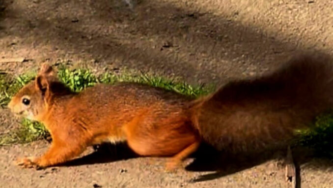 I saw the squirrel before it saw me. It loped towards me by the verge before turning into the yard and setting off up the path, where it was met by Burt and the B&M department. Rather than take the chance of being mistaken for a rat and quickly despatched with a shovel to the back of the head, it took refuge in the shed, but not for long! We (B&M dept.) managed to shoot a short video (the pics a still) as it left the shed, climbed a gatepost & leapt into the greengage tree, before making good it’s escape along the old greenhouse roof. Given the paucity of noteworthy events here in the rural hinterland, this short interlude from a rarely seen neighbour kept us occupied in conversation for at least ten minutes before things turned to more important matters, like “are you watering this mornin’, or am I”? Country life…..innit?