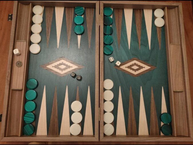 The physical board – with its distinctive sound of rattling dice and clinking checkers, as well as different colour combinations – adds to the experience. These are often lovely works of craftsmanship, and many players end up collecting them.