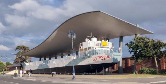 We take a quick tour round Portsmouth Point, a.k.a. Spice Island, with its long and sometimes rather seedy history (there’s a short Richard Vobes ‘Walks in Hampshire’ video, ‘Exploring Old Portsmouth’ which is worth a watch – heavens, he looks young!). Then we wend our way along Pembroke Road, passing the remains of the severely damaged Royal Garrison Church, and back along the Common, with its imposing Portsmouth Naval Memorial, built in memory of some 25,000 British and Commonwealth sailors who lost their lives in both of the World Wars, to end up back at The D-Day Story, our starting point.