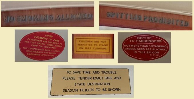 Her interior side panels and seats are now beautifully restored in a deep red ‘leathercloth’ (that’s leatherette, to you and me), to match her gleaming maroon and cream paintwork. Her interior is adorned with a variety of the old signs and instructions we all knew and loved.