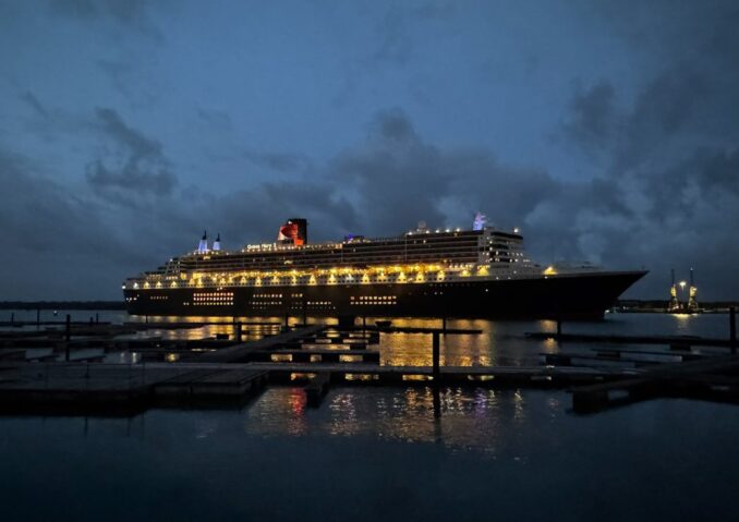 A tube, a local train and an express train from Clapham Junction later, I had arrived at Southampton Central, a few minutes’ walk from my hotel. The staff were obviously well versed in dealing with departing or arriving cruise passengers (adjusting their prices accordingly) and booked me a taxi to the Mayflower Terminal the following morning due to a forecast of rain. Checking the arrivals and departures on the Port of Southampton website, the QM2 was scheduled to arrive at about 04h30 – an event that I wanted to capture on film (or SD card) – so it was to be an early night in advance of an early start the following morning, the ever-helpful hotel concierge having advised me of a good location from which to get a nice shot.