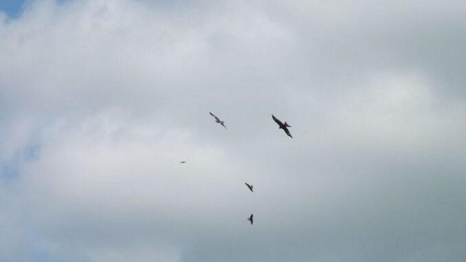 Kites are opportunistic feeders – they don’t really hunt preferring carrion and roadkill and although they are known to take small mammals and birds (especially young or wounded) and even worms during the Spring, they prefer to scavenge and rather than land and forage, they will ‘swoop and grab’ flying on into clearer space to eat.