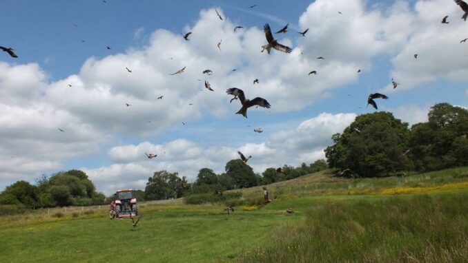 …. and started to scatter the food (the farm gets through ½ ton of beef a week feeding Kites!)