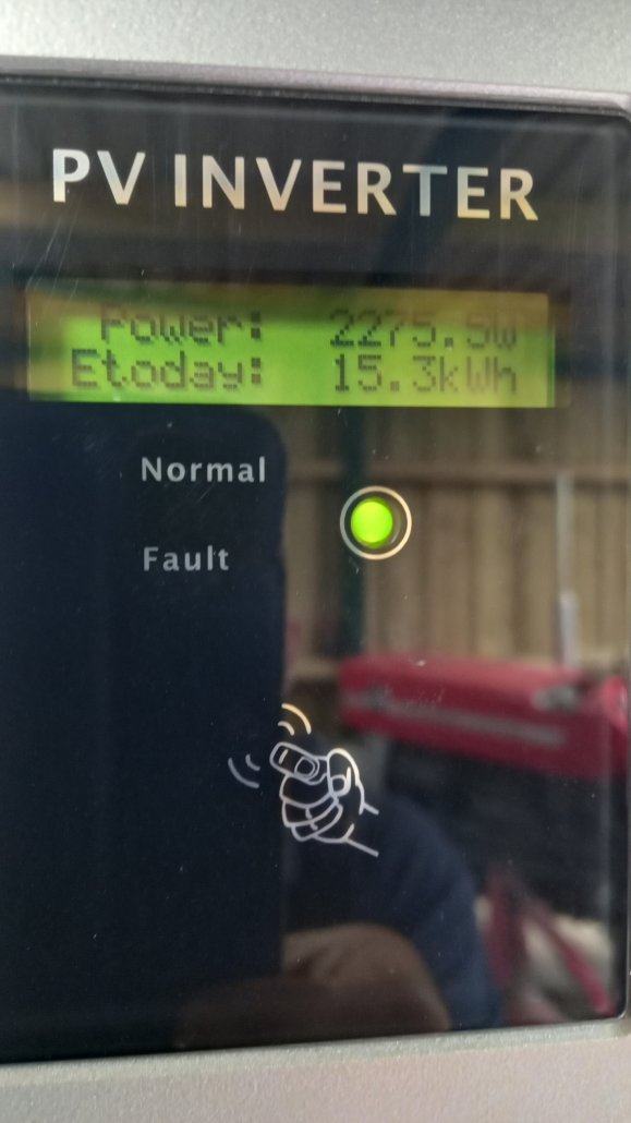 A few days work had it all together and I made the final connections and away it went without fuss. On very bright days at noon I could see the system producing its full 2.2 kW output, but realistically about 2/3rds of that was a good average on a good day and lesser during very dull days, although there is always some useful output. I have an old fashioned electricity meter with the wheel that slowly revolves and delightfully spotted it revolving backwards when output exceeded demand. The day will come when I have to accept a smart meter and then I expect the terms of electricity export to the grid will be poor so I will need a plan B. This will probably be a new hybrid inverter configured to produce zero export to the grid, to charge batteries during the day and to use this storage at night and/or on poor days. An interesting point regarding my meter, the units display will not rewind back beyond zero, thus in effect I have a 10kWh battery provided free by the National Grid. (don’t tell them!)