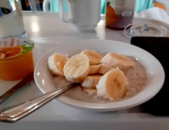 The night was interesting, liberal doses of codeine and paracetamol were administered at 6pm, with oral morphine at 8 and this continued regularly throughout the night. The banter with the staff was, for the most part, quite excellent. One of my fellow patients, (all three of them had had a new knee fitted) claimed to be in perpetual agony. The pain medication wasn’t working for him and he moaned most of the night, only easing his complaining down when the morphine came round. Sleep, as you can imagine, was at a premium. One of the other fellows had insisted on a catheter being fitted, as he couldn’t “perform” into a bottle, but he was having problems with it and his regularly delivered staccato “ouches” made a not unpleasant (to my drug addled brain) counterpoint to the more guttural groans emanating from the other side of the room. Before dawn, after I’d exchanged some further pleasantries with the lovely duty nursing aid as she’d waited for me to use a “bottle” the “moaner” said “you fancy yourself a bit of a ladies man, don’t you”? Indeed I do, I replied. The genuine laughter from the nursing aid, who I like to think had appreciated a little bit of light hearted joshing as she’d toiled through her shift was enough to forestall any further conversation on the subject. The porridge was nice and the banana (a fruit which I generally have something of an aversion to) was a necessary evil.