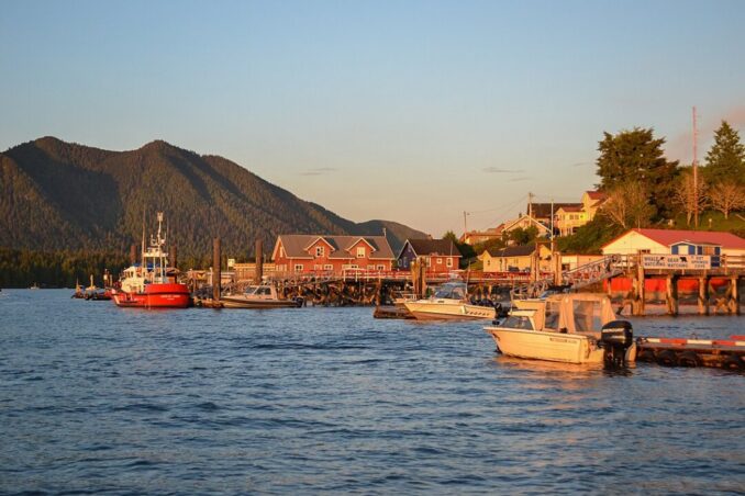 Travelling into the town, you pass through the Pacific Rim National Park which covers about 20 miles of coastline plus numerous outlying islands, bays and inlets stretching many miles beyond that. Tofino itself is a nice little place with around 2,500 permanent residents, vastly more during the peak season when all the hotels, motels and campgrounds fill up with visitors. There are no end of restaurants (as you’d expect, seafood is a local speciality), along with shops selling souvenirs and local arts & crafts.
