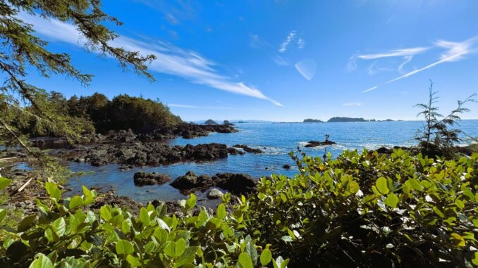 Further south on the peninsula lies the town of Ucluelet (pronounced you-clue-let), another pretty little place geared to tourism, which marks the start and endpoint of a loop trail which winds around the rocky coastline in a forest of tall cedar trees. This coast has been the site of numerous shipwrecks over the years, many of which are detailed in the local visitor centre with the remains of some of them still being visible among the jagged rocks.