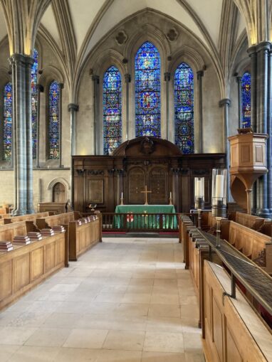 The Temple Church was badly damaged during WWII and although the columns in the chancel were replaced and the Church restored, the extensive decoration was lost and not replaced. The effigies are quite badly damaged too although there is a good copy of the William Marshall one in the Temple Church nave. It now seems quite austere but I really liked it. One thing that was saved was the carved altarpiece made by Wren’s team dating from the 1680’s, this was sold off in the 1840s but brought back after restoration.