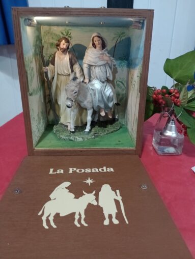 The tradition of Posada (Spansish for inn) started in Mexico commemorating Mary and Joseph’s journey to Bethlehem in search of shelter. It is also known as a Travelling Crib and, in the UK, is a Church Army initiative. The nativity figures of Mary and Joseph travel from house to house, community spaces, schools, pubs and businesses spending the night is a different location each time before arriving in church on Christmas Eve.