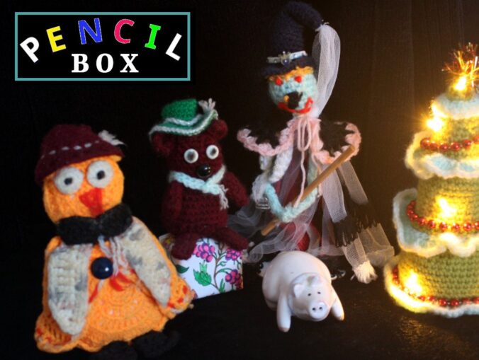 The Pencil Box team (looking like some obscure 1970s album cover!). L-to-R, Peabody, Finnley, Mr Wiggy and Edna.