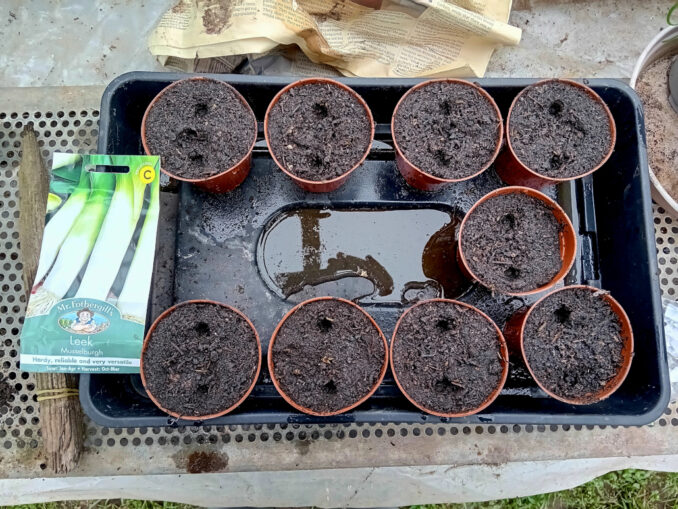 Meanwhile, planting of seeds continues apace, with more leeks on the go, along with radish, lettuce and a mix of beans and peas, both of which are showing a reluctance to germinate. I hope to have better news to impart on this situation next time around. 18 leeks are through, and I think 36 will be plenty for the first planting. I’m planning on having a second go, so this lot will be harvested quite early as “babies”, fingers crossed. The carrots are yet to germinate, but the onions (more on this next time) are poking through nicely. It’ll soon be time to call Burt back to work!