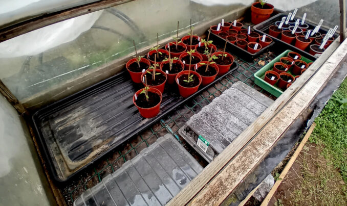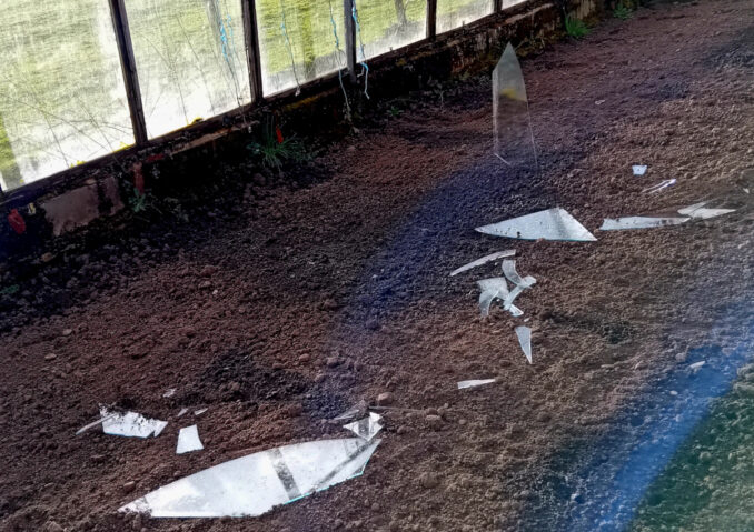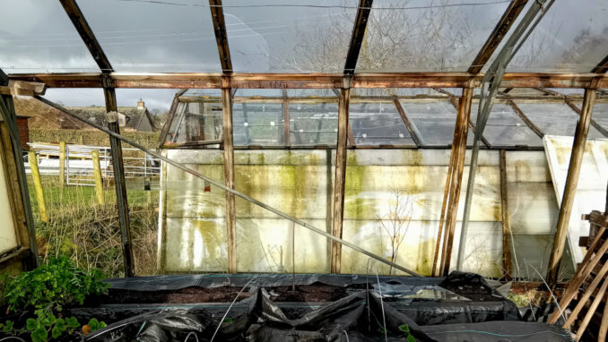 Although we have a stock of glass, recent winter and early spring weather “events” have led to it becoming a little depleted. As the other greenhouse is nothing more than a log shed now. What remains of its sides is mostly cladded with some multi-wall poly-carbonate sheets that I acquired some years ago. The timber roof’s on the verge of collapse, so the remaining glass is being utilised to replace the broken sheets, allowing us to hang onto said stock a little longer. This creates another problem; Do we (that’s the royal we) turn it into more outside growing space, or do we bite the bullet and buy some poly sheet to replace the glass and retain it as a shed. As with most things in this part of the world, the answer to this will be revealed in the fullness of time, which could be weeks, although its far more likely to be months, or even years. Whatever gets done, the continuing integrity of the growing house isn’t up for discussion, it’ll be kept in service as long as we’re able to keep it going. The benefits far outweigh the downsides (up to now) of making sure of this.