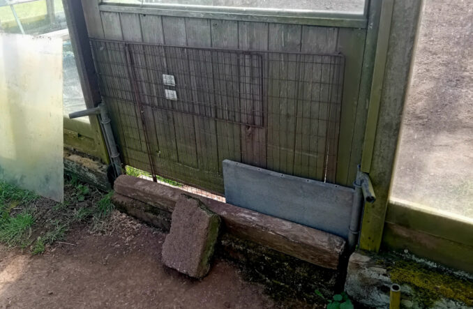 What you don’t need, when unscheduled maintenance/repairs have to be undertaken are other distractions; however, amongst the revitalised and burgeoning rabbit population we reckon there must be at least one of such ferocity and single-mindedness that it’s decided, whatever the obstacles put in its way, that the place for its next burrow will be in the newly rotovated, fertilised and raked over tomato patch. It had actually been gnawing at the makeshift wooden doorstop and although we managed to dissuade it from coming in the front door by repurposing an old fireguard, it simply dug under a sleeper and found its way in anyway. The battle is ongoing, but we’re hoping it’ll lose interest, or get a shovel blade to the back of its head, before it causes much more angst for us.