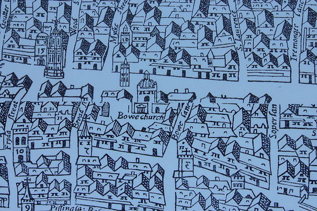 St Mary-le-Bow Church as shown on the woodcut map of the early 1560s